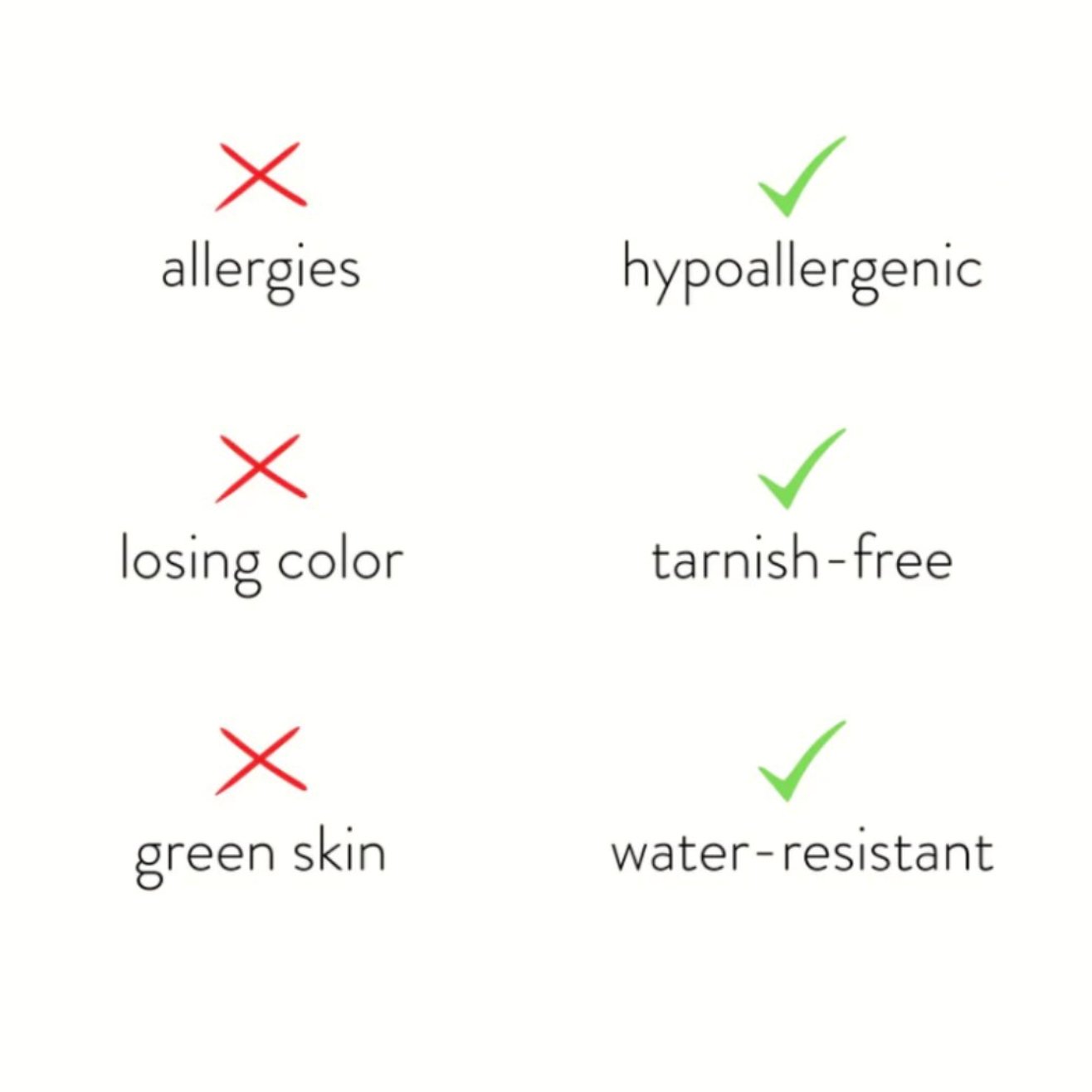 Made with waterproof stainless steel, you never need to worry about fading or tarnishing jewelry ever again.